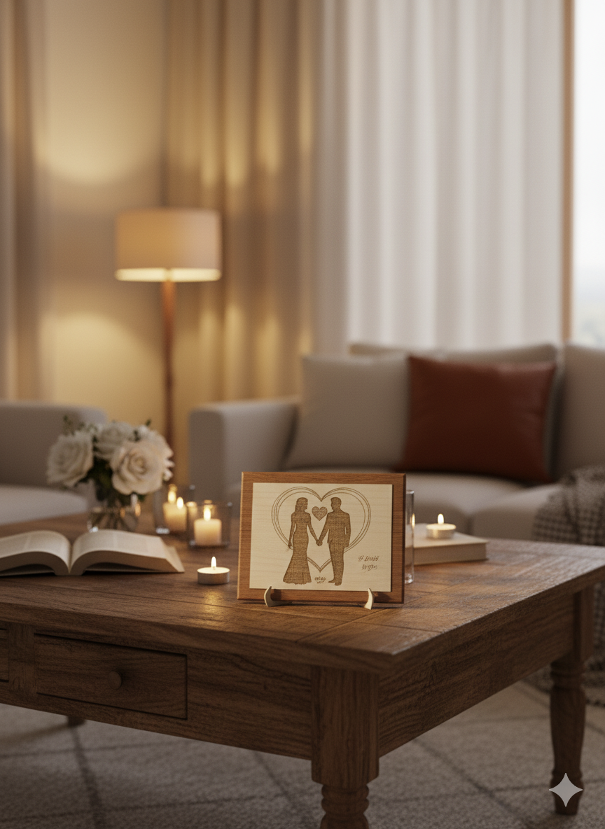 Trasforma i tuoi momenti più preziosi in un ricordo eterno con la nostra incisione laser personalizzata su legno. Un regalo unico e di grande impatto emotivo, perfetto per celebrare un legame speciale o un’occasione indimenticabile.