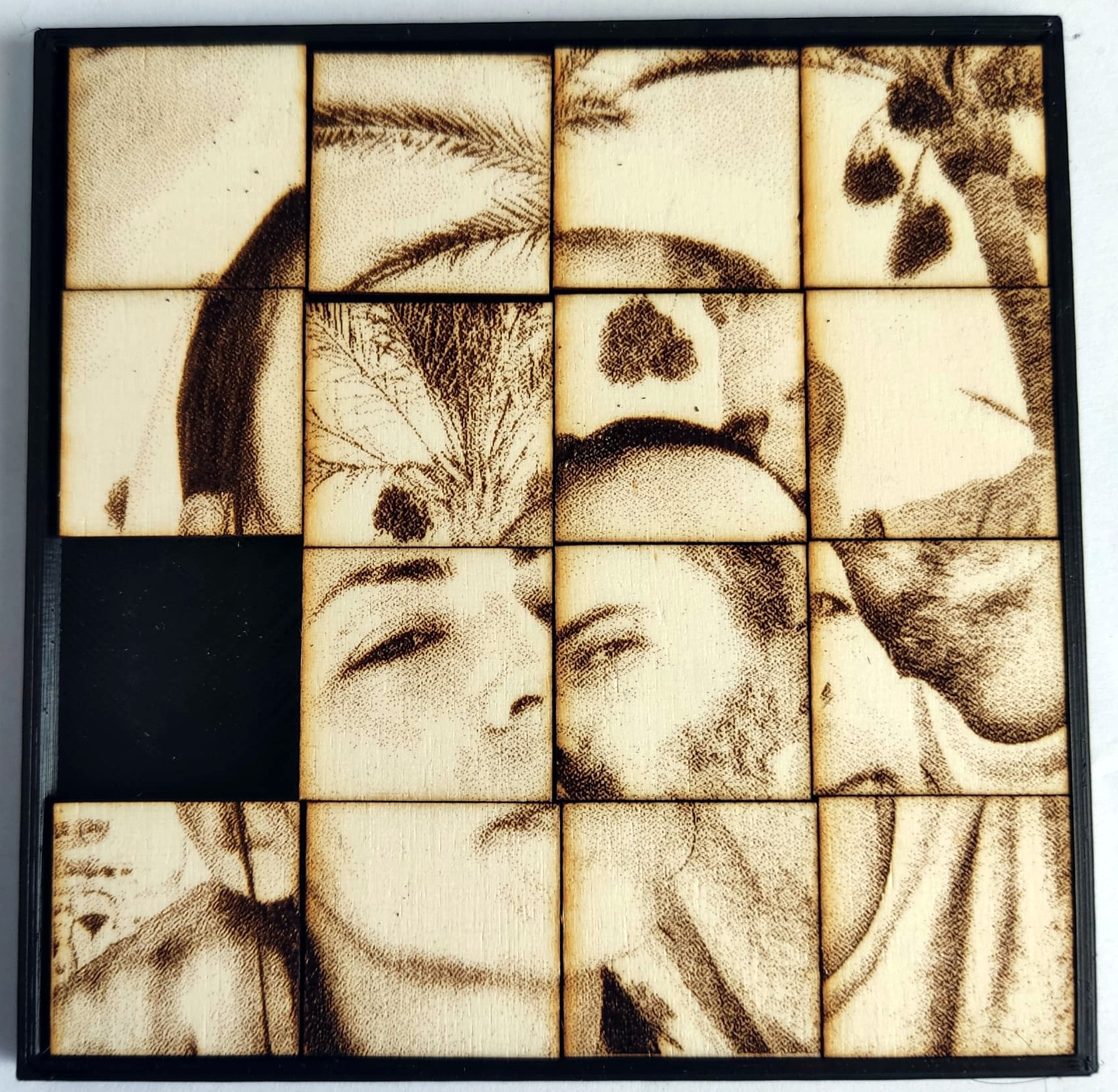 Il nostro Sliding puzzle personalizzato è realizzato con incisione laser di alta precisione su legno, rendendo indelebile la tua fotografia, il tuo logo o la tua dedica speciale.