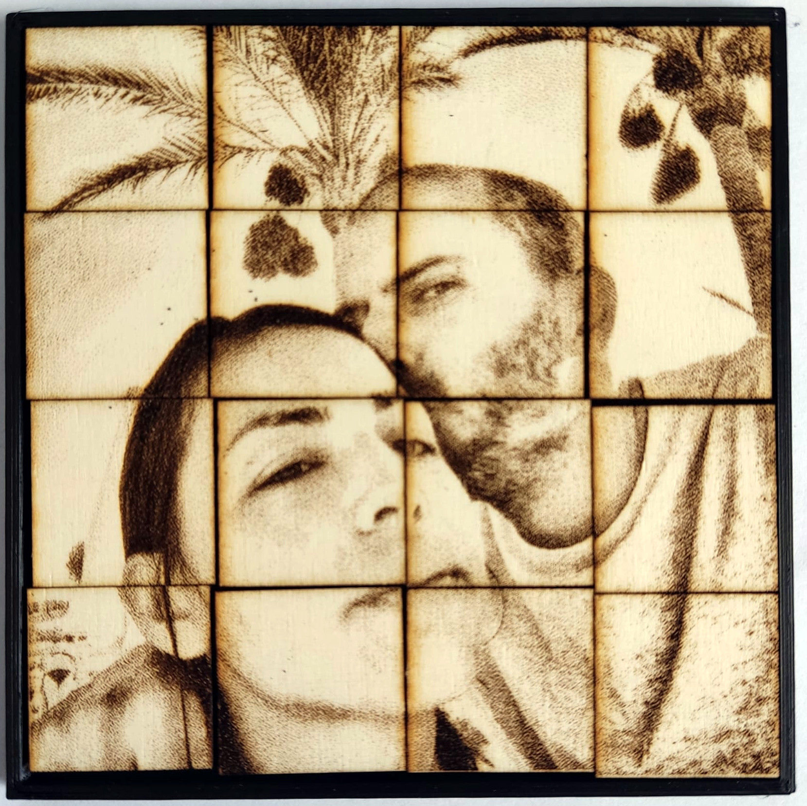 Trasforma la tua foto preferita in un intimo rompicapo in legno. Il ricordo diventa un Gioco del 15, unico e indelebile, inciso al laser.